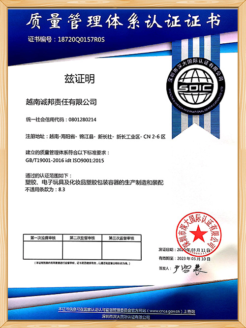 世邦塑膠-越南2020 ISO證書(shū)中文版